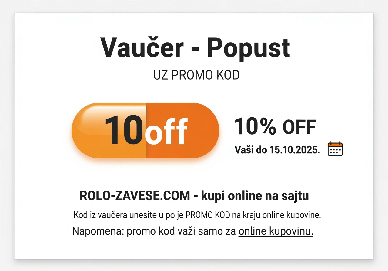 Kupon važi do 15.10.2025 – Moze se koristiti za ONLINE kupovinu iskljucivo,a ponudu online zavesa i ostalih artikala pogledajte u našem ONLINE SHOP-u. Popust ne važi na artikle iz OUTLETA.